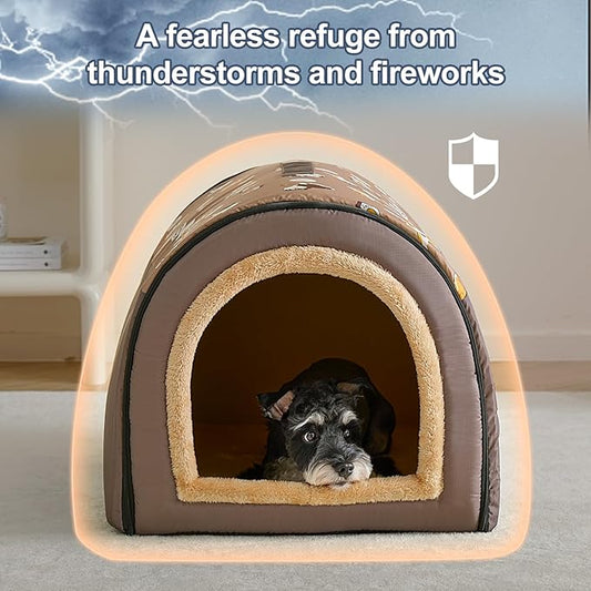 Jiupety 2 in 1 Dog House Indoor, Comfy Cave Bed Covered Dog Bed, Portable House for Medium and Large Dogs, 2XL(35"×27"×26"), Up to 70 Lb, Brown