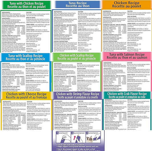 INABA Churu Cat Treats, Grain-Free, Lickable, Squeezable Creamy Purée Cat Treat/Topper with Vitamin E & Taurine, 0.5 Ounces Each Tube, 36 Tubes (4 per Pack), 9 Flavor Variety