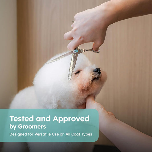 8” Dog Grooming Scissors – VG10 Japanese Steel Professional Pet Thinning Shears for Cats & Dogs | Clean Cut & Precise Trimming | Lightweight, Ergonomic, Handcrafted | Thinning Rate 50% | K9 Shears
