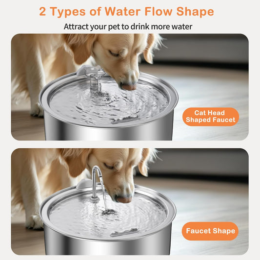 8L/2.1G Dog Water Fountain for Large Dog, Dreamocean Dog Water Bowl Dispenser Stainless Steel Pet Water Fountain, Water Dispenser for Dogs with 2 Ultra Quiet Pump for Multiple Pets with 12 Filters
