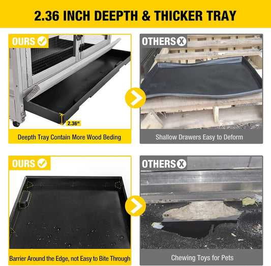 Aivituvin Chicken Coop Outdoor with Wheels, Mobile Hen House Wooden Poultry Cage with Run & Waterproof Roof (Grey with White)
