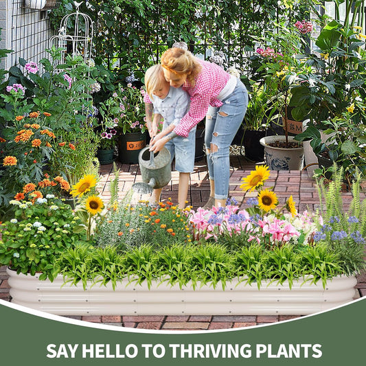 1MORE Galvanized Raised Garden Bed- Planter Garden Boxes Outdoor, Raised Beds for Gardening, 8x2x1ft Metal Garden Bed Kit for Vegetables Flower, Planter Raised Beds with Protective Tape & Tools.White