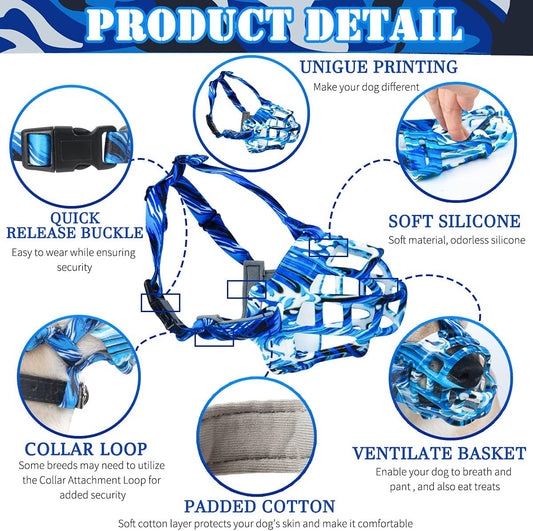 BARKLESS Basket Muzzle for Dogs, Humane Muzzle to Prevent Biting and Scavenging, Snap-on Treat Cover Helps Dogs Acclimatize Mouth Cover, Adjustable Mouth Guard for Positive Training, Grooming
