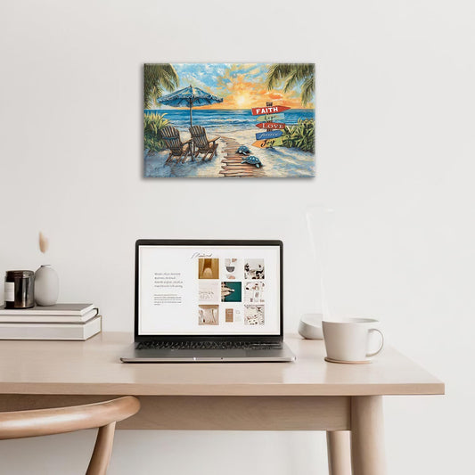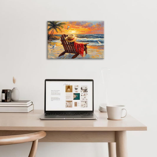 Beach Sunset Wall Art Ocean Coastal Scenery Wall Decor Seascape Picture Canvas Landscape Painting Print Framed Artwork Decorations for Living Room Office Bedroom Kitchen 16"x24"