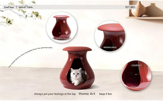 2-in-1 Gourd Stool & Pet Bed - Space-Saving Eco-Resin Furniture with Rounded Edges(A-Red)