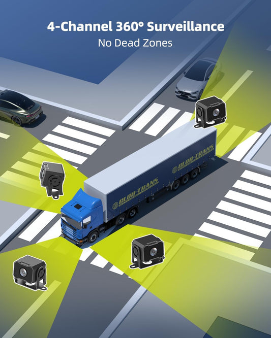 4 Channel 1080p HD Backup Camera System with 10.2" Touchscreen Monitor, DVR Recording/Playback, Bluetooth, FM Radio & Media Player for Trucks, Semis, RVs, Trailers, Vans, SUVs, Cars