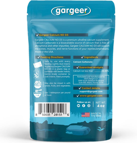 4oz All Reptile Calcium Powder, Phosphorus-Free Ultrafine Powder, Pure Dust Without Vitamin D3, Ready to Use for All Reptiles, Lizards & Amphibians Supplement. Made in The USA. Enjoy !