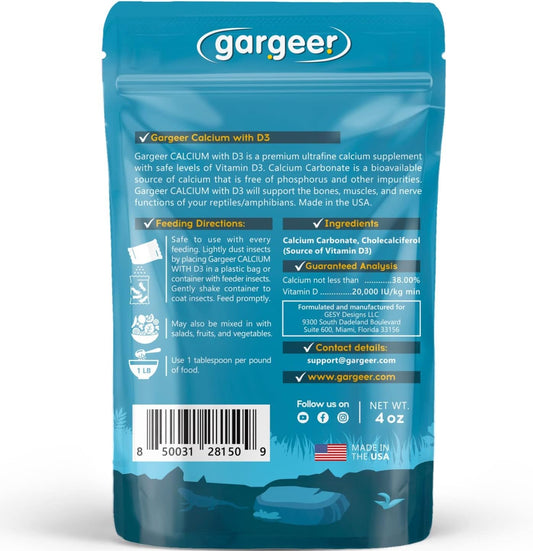 4oz All Reptile Calcium with Vitamin D3, Phosphorus-Free, Ultrafine Powder. Pure dust, Real Fruits Blend Flavored Ready to Use Supplement, for Lizards & Amphibians. Made in The USA. Enjoy !