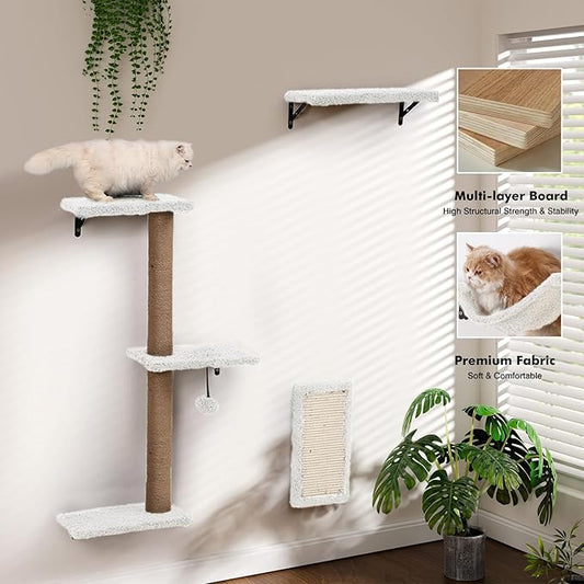 5-in-1 Cat Wall Shelves for 16 Inch Drywall: Space-Saving Wall Mounted Cat Shelves with Climbing, Perch & Lounge