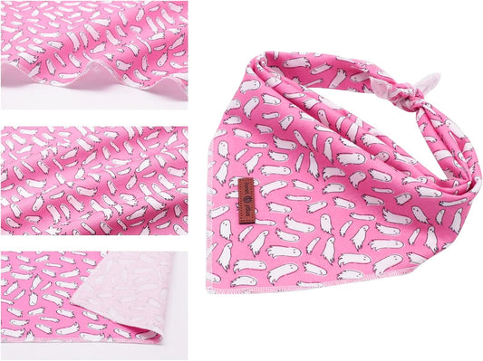 Lionet Paws Halloween Dog Bandana Washable Cotton Handkerchief Scarf Triangle Flower Ghost Pink Bandanas for Medium Large Dogs Girl