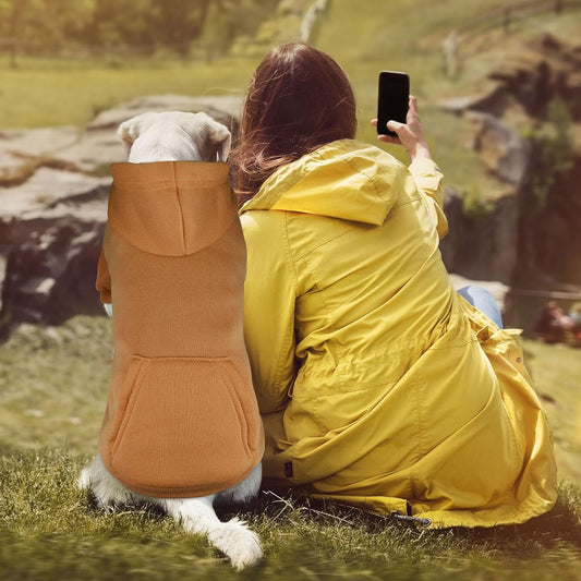 Dog Sweaters for Medium Dogs Dog Hoodie Solid Soft Brushed Fleece Clothes Sweatshirt with Pocket(Coffee-M)