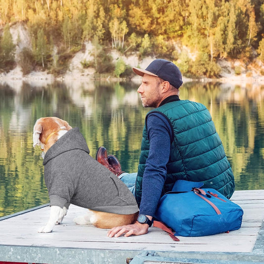 Dog Hoodie Dog Sweaters for Large Dogs Dog Sweater Solid Soft Brushed Fleece Dog Clothes Dog Hoodie Sweatshirt with Pocket(Grey-L)