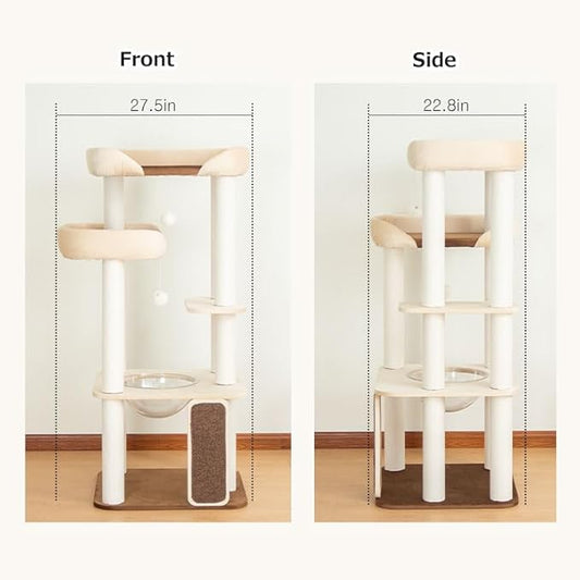 Cat Tree for Indoor Cats, 64.5" Tall Cat Tower with 2 Cozy Condos, Scratching Posts, Large Hammock and Dual Padded Perches, Multi-Level Activity Center for Large Cats, Beige