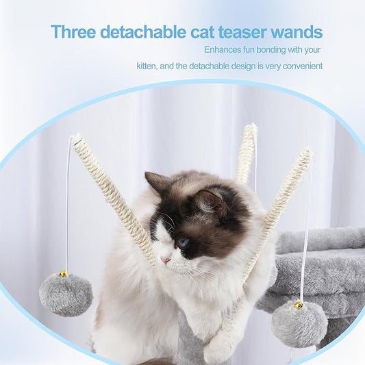 Hey-brother Cat Tree Tower, Scratching Posts with Removable Toys, Cozy Condo, Platform, Hammock, Sisal Scratch Board and Ball for Indoor Kittens, 41.3 Inches, Light Gray MPJ008SW