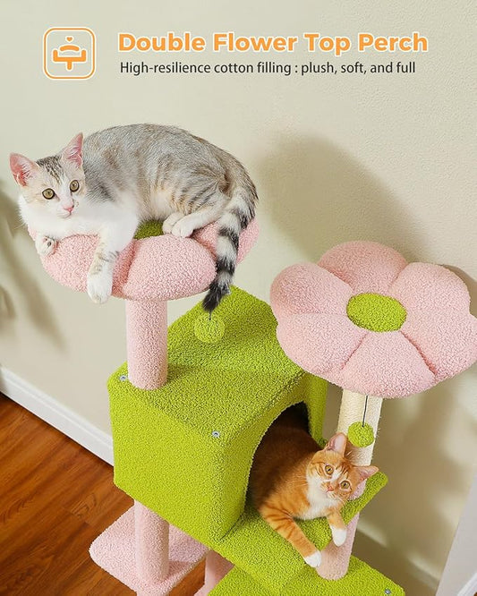 52.4" Flower Cat Tree, Cute Cat Tower for Indoor Cats with 2 Padded Flower Perches, 2 Cozy Condos & Sisal Scratching Posts, Pink