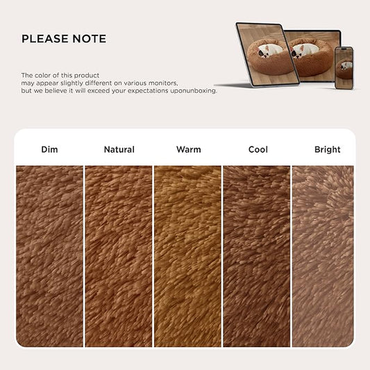 rabbitgoo Cat Beds for Indoor, 20 inches Machine Washable, Fluffy Round Pet Bed Non-Slip, Calming Soft Plush Donut Cuddler Cushion Self Warming for Small Dogs Kittens, Light Brown, Medium