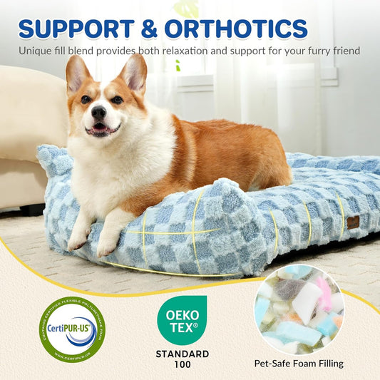 Large Dog Bed Sofa, Fluffy Pet Bed for Medium and Large Dogs, Supportive Dog Couch Sofa for Dogs, Pet Sofas with Washable Cover & Non-Slip, 38 inch, Blue