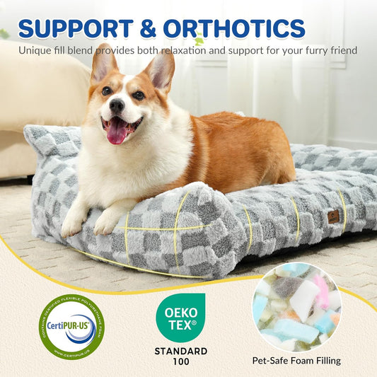 Cat Bed Cats Couch for Puppy and Kitten, Fluffy Pet Couch Small Dog Sofa Bed, Supportive Cat Sofa for Indoor Cats, Washable Cover & Non-Slip, 26 inch, Grey