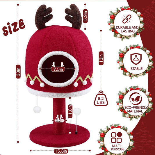 Luxury Treehouse Cat Tree for Indoor Large Cats,54.7'' Tall Modern Wood Cat Tower with 3 Level House,4*Cozy Perch,1*Soft Viewing Bed,Heavy Duty Wide Base,Sisal Scratching Post (33inch)