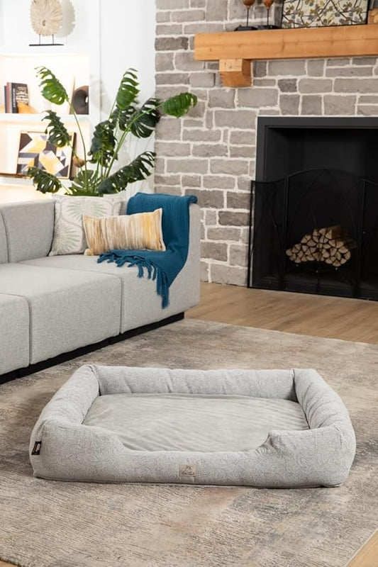 Furry's Paradise Foam Cuddler Pet Bed with Waterproof Liners, Reversible Cushion, Washable Cover, Recycled Fibers and Non-Slip Bottom. (Gray Paisley, Orthopedic Medium)
