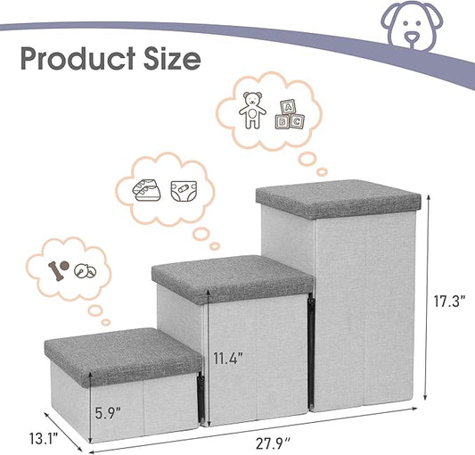 Heeyoo Dog Stairs with Storage, Foldable Dog Steps for Small Dogs, 3 Tiers Non-Slip Pet Stairs for High Beds Or Couch and Sofa, Hold up to 200 lbs Pet Cat