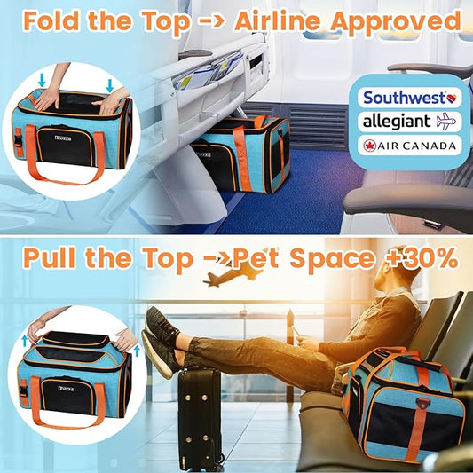 Petskd Top-Expandable Pet Carrier 19x13x9 Inches Southwest Allegiant Airlines Approved, Soft-Sided Carrier for Small Dog Under 12 lbs and Large Cat Under 15 lbs(Blue)