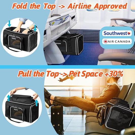 Petskd Top-Expandable Pet Carrier 18x13x9.5 Inches Southwest Airline Approved, Soft-Sided Carrier for Small Cats and Dogs with Locking Safety Zippers and Anti-Scratch Mesh(Black)