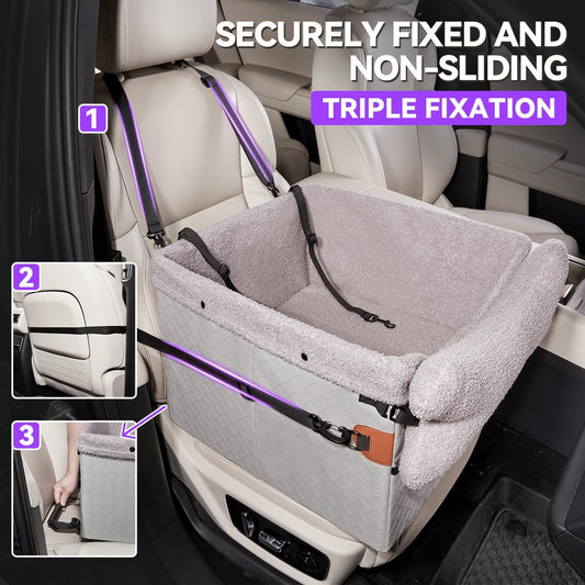 Dog Car Seat for Medium/Large Dogs, Dog Booster Seat for Pet Under 50lbs or 2 Small, Detachable and Washable Pet Car Seat,Multi-Functional Pet Travel Bed for Backseat(Grey)