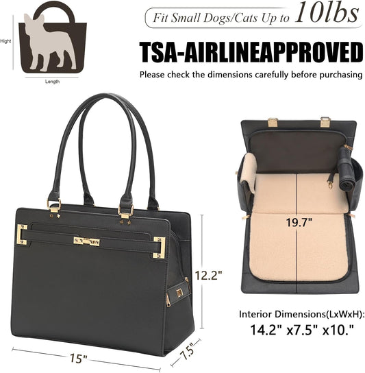 Fashion Pet Carrier Purse for Small Cat and Dog, Luxury Pu Soft-Sided Tote Bag with Large Pockets for Dogs and Puppies (Black, 15.8" L x 7.5" W x 11.8" H)