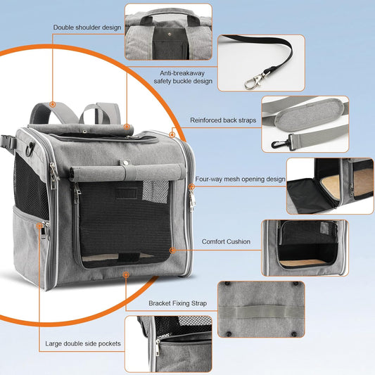 Xixter Dog Basket for Bike, Suitable for Small & Medium Pet Up to 7 kg, Foldable 4-in-1 Pet Bike Basket, Crossbody, Shoulder and Car Seat, with Sturdy Bracket and 4 Mesh Windows, Gray