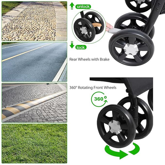 Pet Stroller for Medium Small Dog & Cat, Foldable Lightweight Dog Stroller with Storage Basket Pet Travel Carriage with Safety Leashes, 4 Wheel, Black