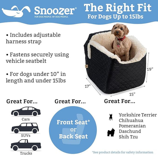 Snoozer Lookout I Car Seat - Dog Car Seats for Small Dogs, Puppy Booster Bed for Small Sized Pets up to 18 Lbs, Elevated, Washable - Size S, Black Diamond
