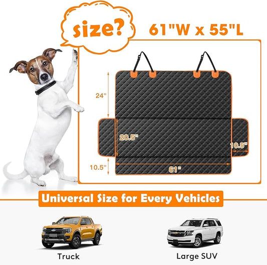 Dog Car Seat Cover for Back Seat, Waterproof Protector with Side Flaps, Scratchproof Hammock, Non-Slip Bottom for Cars/Trucks/SUVs (Black)