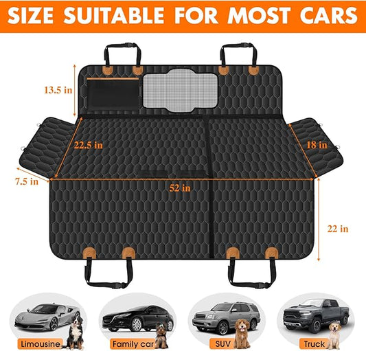 Waterproof Dog Car Seat Cover for Back Seat - Durable, Scratch Proof Pet Hammock with Nonslip Design & Storage Pockets, Fits Cars, SUVs, Trucks- S, Black
