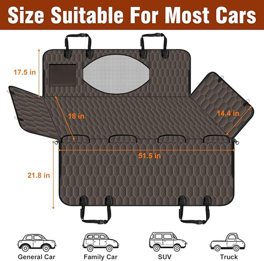 Waterproof Dog Car Seat Cover - Scratch Proof Nonslip Back Seat Hammock with Mesh Window & Storage Pocket for SUVs/Trucks/Sedans-S, Brown/Black