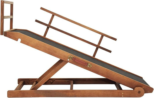 Dog Ramp, 5 Level Adjustable Height Folding Pet Ramp for High Bed, Portable Paw Ramps Large Bed Ramp for Medium & Large Old Dogs & Cats - Natural Wood Furniture Quality