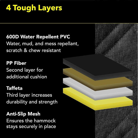 Hard Bottom Dog Car Seat Cover for Back Seat – Waterproof Nonslip Hammock Extender for Trucks & SUVs, Heavy Duty Pet Protector, Black Oxford Fabric