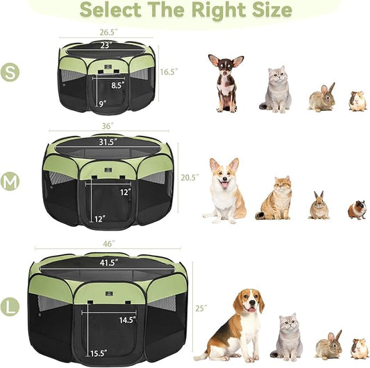 A4Pet Dog Playpen Indoor, 49” Portable Playpen with Bowl, Suitable for Puppies, Kittens, and Small Animals, Removable Zipper & Mesh Panel(16”W × 10”H)