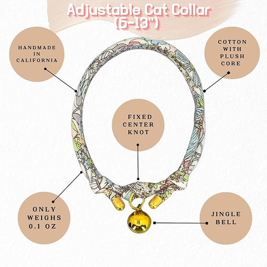 Handmade Cotton Cat Collar with Bell – Adjustable Slip-On Design, No Buckle, Lightweight Rope Collar for Kittens, Indoor Cats, and Small Pets (Daisy)