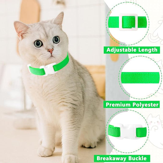 Elastic Cat Collar, Stretch Cat Collar Quick Release, Bright Colors Safety Kitten Collar Adjustable Collar for Kittens, Lightweight Soft Polyester Collars for Boy Girl Cats (Green,M)