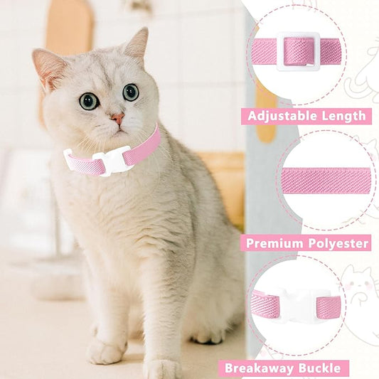 Elastic Cat Collar, Stretch Cat Collar Quick Release, Bright Colors Safety Kitten Collar Adjustable Collar for Kittens, Lightweight Soft Polyester Collars for Boy Girl Cats (Pink,S)