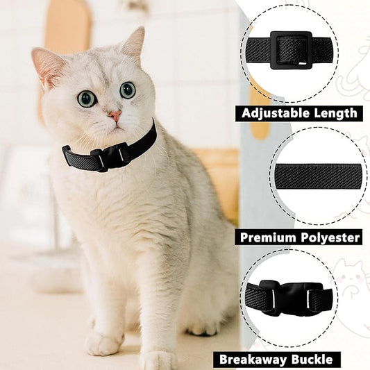 Elastic Cat Collar, Stretch Cat Collar Quick Release, Bright Colors Safety Kitten Collar Adjustable Collar for Kittens, Lightweight Soft Polyester Collars for Boy Girl Cats (Black,M)