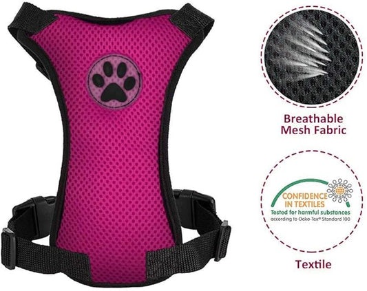 Lukovee Dog Seat Belt for Car, Adjustable Dog Car Harness for Large Medium Small Dogs, Soft Padded & Breathable Mesh Dog Seatbelt with Car Vehicle Connector Strap (Rose Red,Medium)