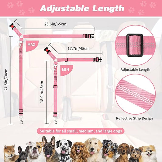 Lukovee Dog Seat Belt for Car, Adjustable Dog Car Harness for Large Medium Small Dogs, Soft Padded & Breathable Mesh Dog Seatbelt with Car Strap and Carabiner(Rose Double Clip,XX-Small)