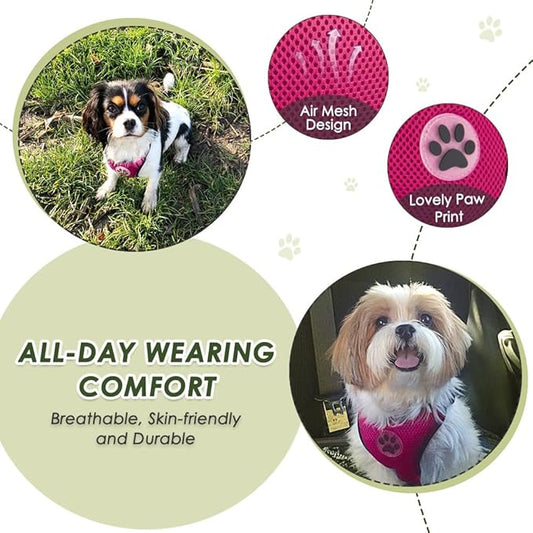 SlowTon Dog Seat Belt Harness for Car, Dog Car Harness Adjustable Mesh Breathable & Dog Seatbelt Safety Tether with Elastic Bungee for Small Medium Large Pets(Fuchsia, Double Clip, XS)