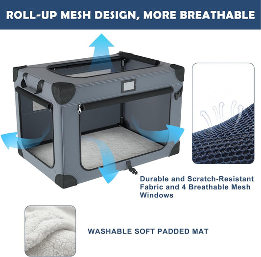 Dog Crate, Collapsible Soft Travel Crate for Large Dogs (3 Year Warranty), Indoor & Outdoor Portable Pet Kennel with Chew-Proof Mesh Window (Dark Gray, 36" L x 25" W x 25" H)