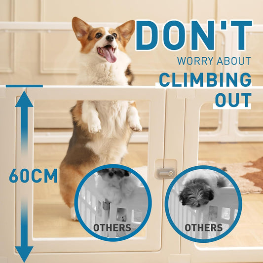 Citylife Dog Playpen with Door Clear Pet Playpen for Indoor Outdoor Easy to Install and Remove Puppy Playpen for Dogs, Cats, Bunnies, Pigs, 8 Panels