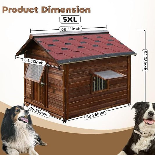 Dog House Outdoor for Large Breed Dogs with Removable Floor&Roof,Warm Big Dog Houses for Medium Dogs,Heavy Duty Indoor Pet House,5XL-68.11"(D) X 54.33"(W) X 58.27 "(H)