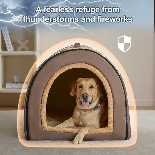 Jiupety 2 in 1 Dog House Indoor, Comfy Cave Bed Covered Dog Bed, Portable House for Large Dogs, 3XL(39"×32"×28"), Up to 90 Lb, Brown