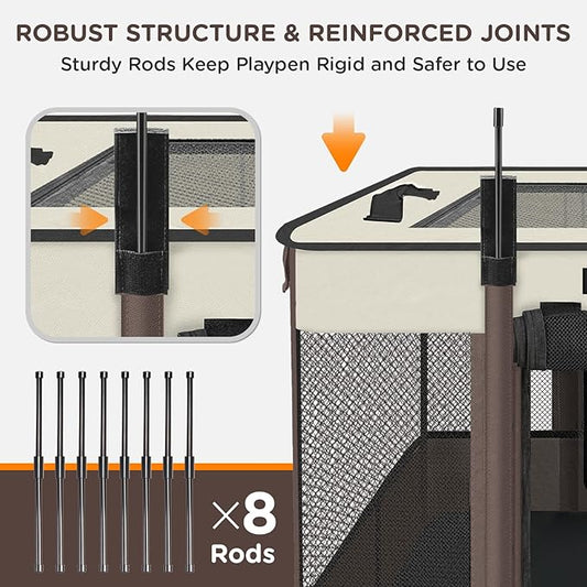 Dog Playpen, Portable Pet Play Pen for Cat, Puppies, Rabbits, Chickens, Foldable Large-Capacity Pet Tent for Indoor/Outdoor Travel Camping Brown